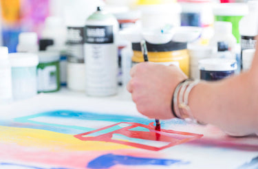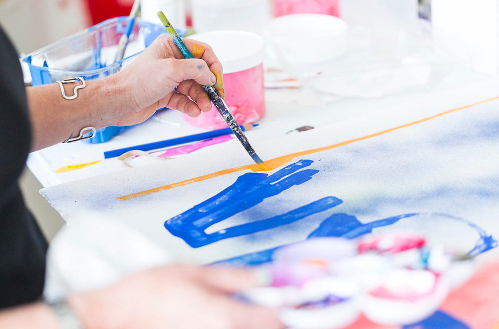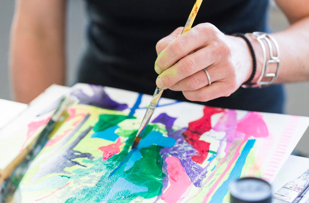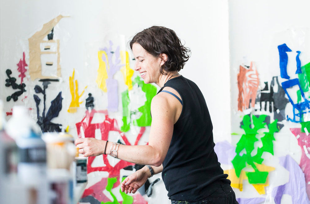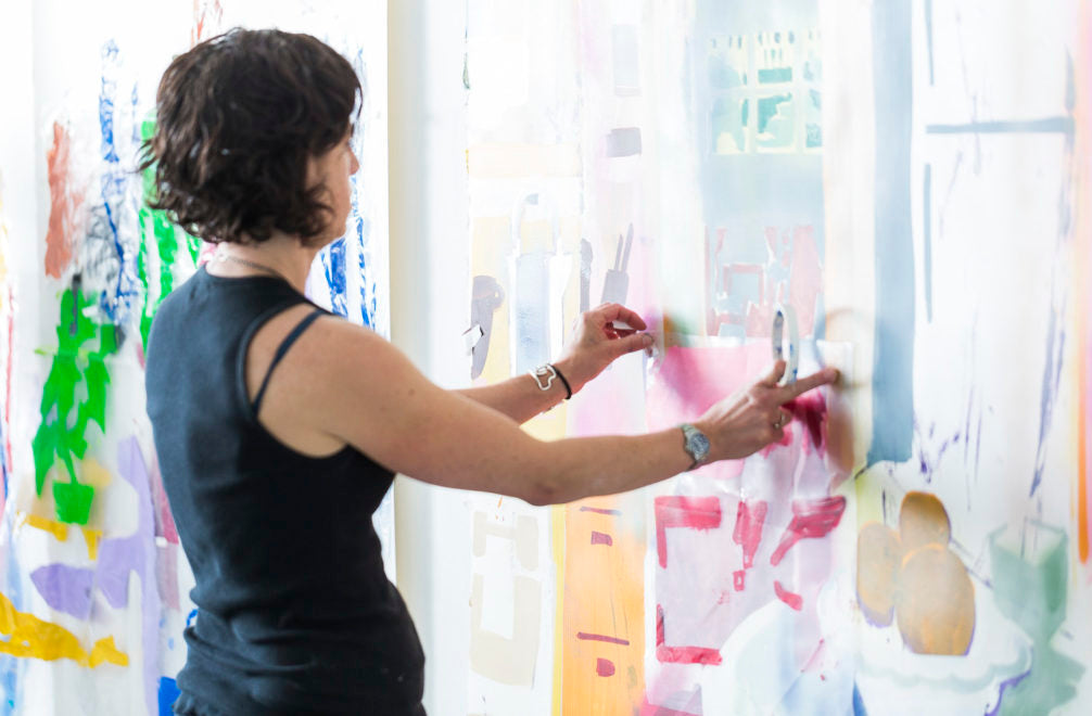 Allison Gildersleeve opened up a new vocabulary in her painting practice during her Liquitex residency, with a transition from oils to acrylic. A fresh way of working emerged as she activated the whole studio, working on the walls, tables and floor, using the full range of Liquitex materials. Allison is a Sharpe-Walentas Studio Program Awardee 2017-2018, and used her time in our London studio to plan a mural for the Cynthia Reeves Gallery by pinning up her multi-media marks on plastic and moving them about to create layers of depth. Discover how she used our materials to create studio wall ‘sketchbooks’ that she references when making her paintings on paper and canvas.
