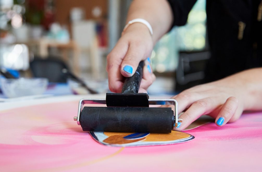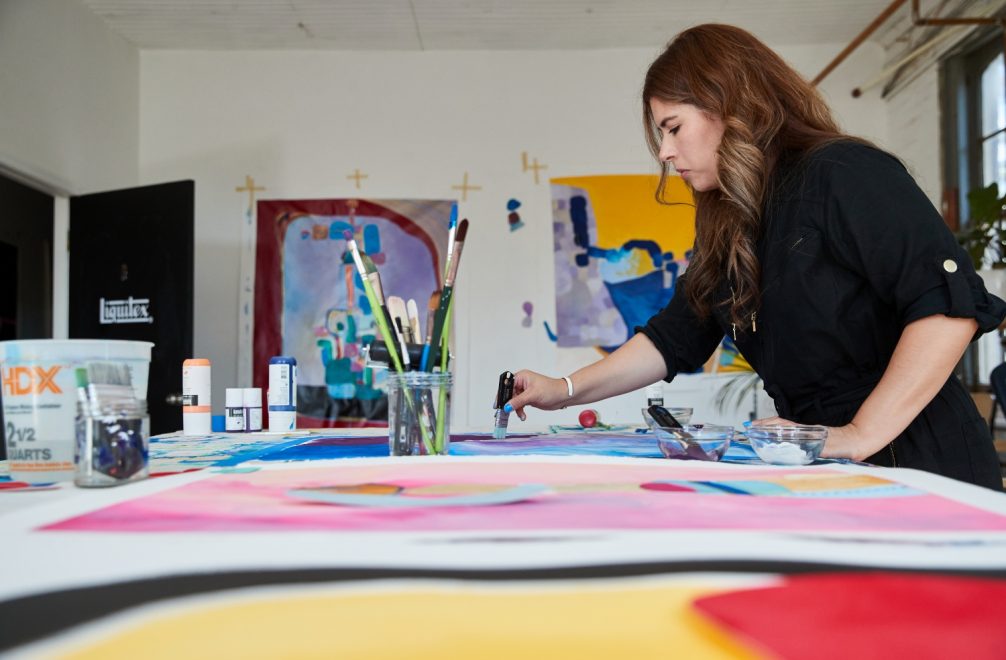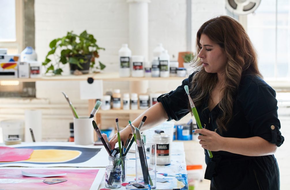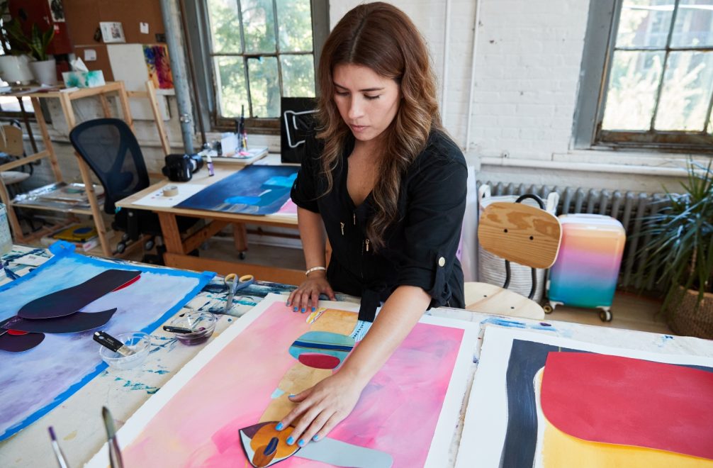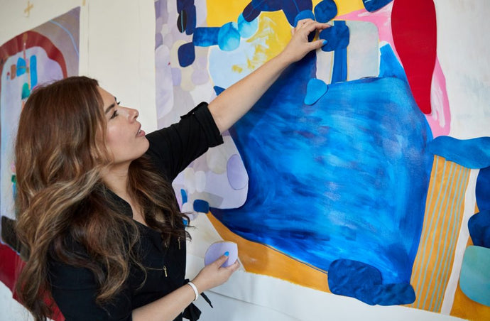 Meet Cynthia. A multidisciplinary creative who perfectly marries graphic design with mixed media and collage to create dimensional layered pieces. During her Acrylic Mediums residency, Cynthia explored the concept of revitalizing old paintings to create something new in her large scale collage pieces: