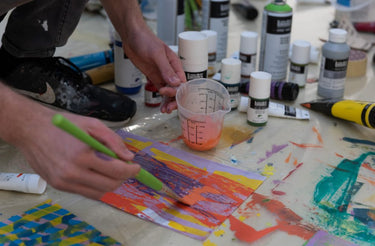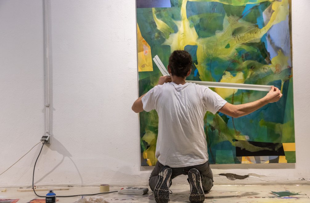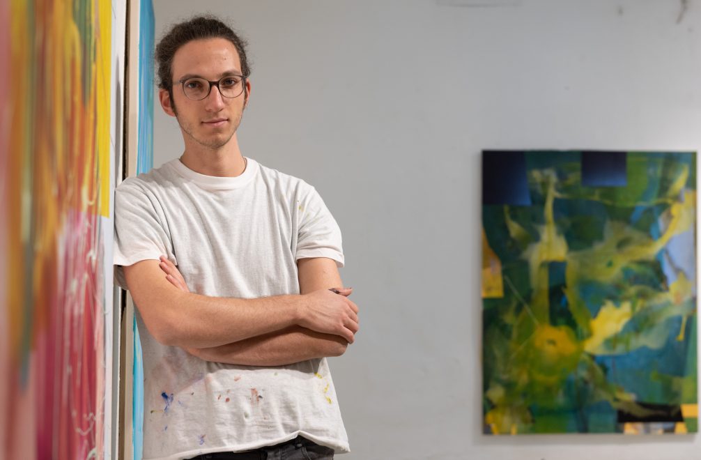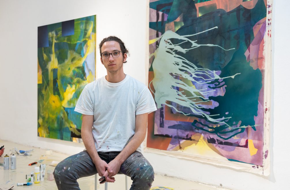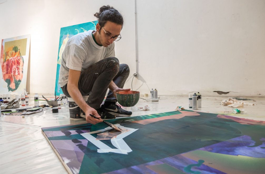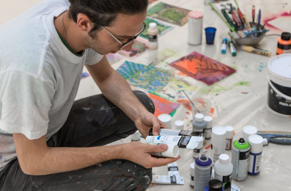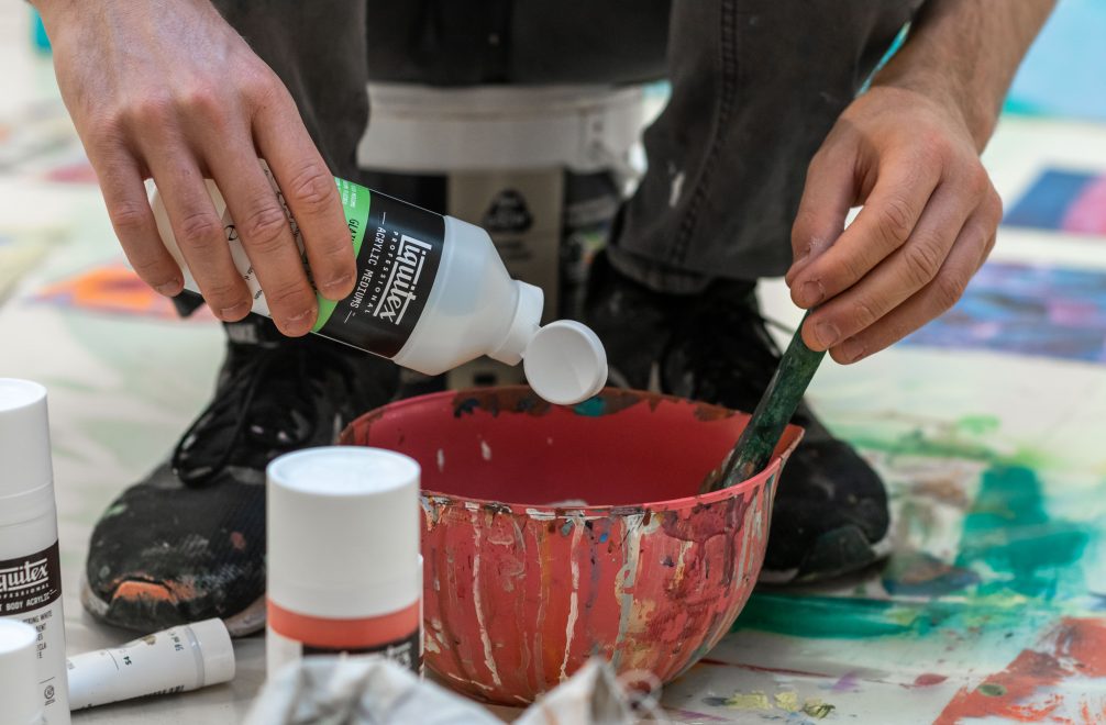 Meet Damiano Colombi. Painter, researcher and creative investigator. Damiano graduated from the Academy of Fine Arts in Venice, where his interest in abstraction, form synthesis and technical experimentation first emerged. During his Liquitex Just Imagine Residency in Rome, Italy, Damiano further explored the concept of experimentation of acrylic through a series of techniques executed on large format canvases.