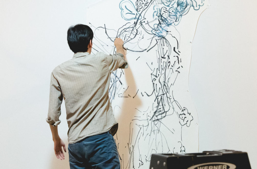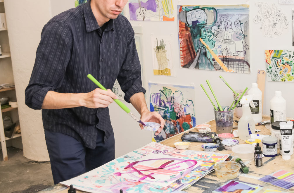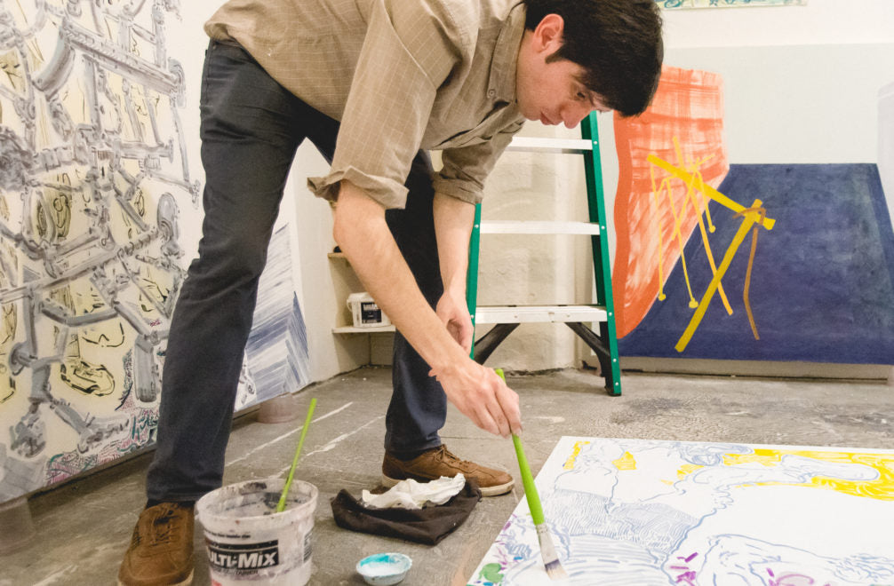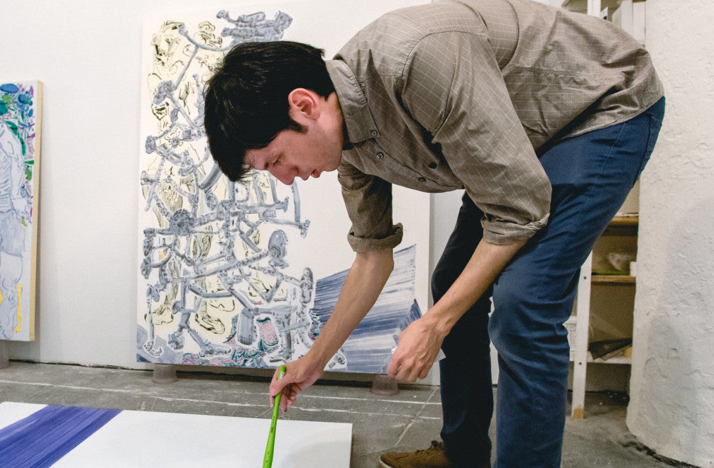 Known for his diverse use of materials and mark making, Daniel Mantilla’s art explores ideas of adventure and surprise. He recently wrapped a successful solo exhibition at the renowned Hunter College Art Galleries in New York. During his Liquitex Cadmium-Free Research Residency at Residency Unlimited, Daniel worked on six canvases where he explored the recurring themes of resourcefulness and resilience. In each painting, a protagonist is prevented from falling or collapsing. See more on Daniel's New York residency below.