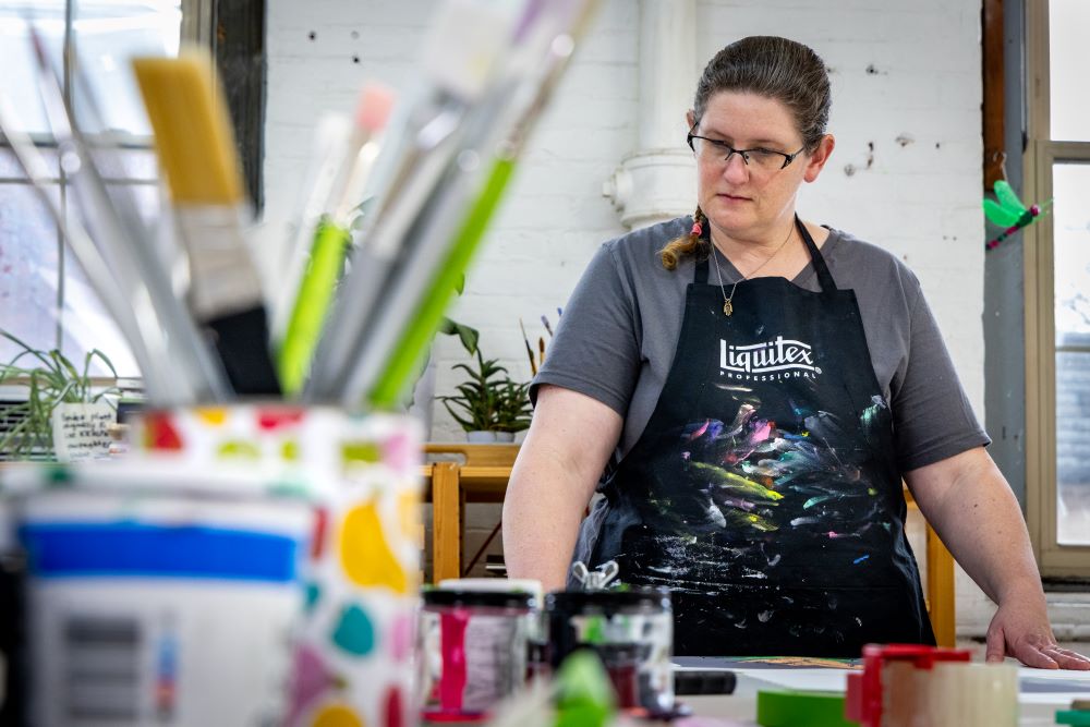Meet Kate Eggleston, our latest Liquitex resident creative. Kate is a multidisciplinary artist and educator, mainly focused on textiles, sculpture and works on paper. Threads of folk stories, childhood memories and chickens run through her current work. She relies heavily on process and repetition, which manifests as sewn and drawn multiples.