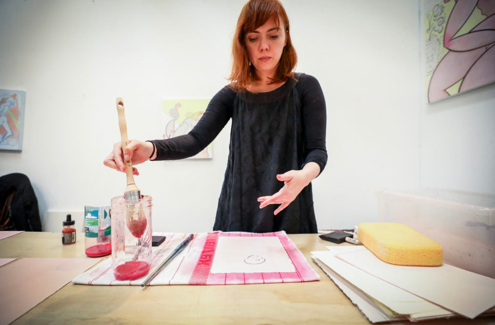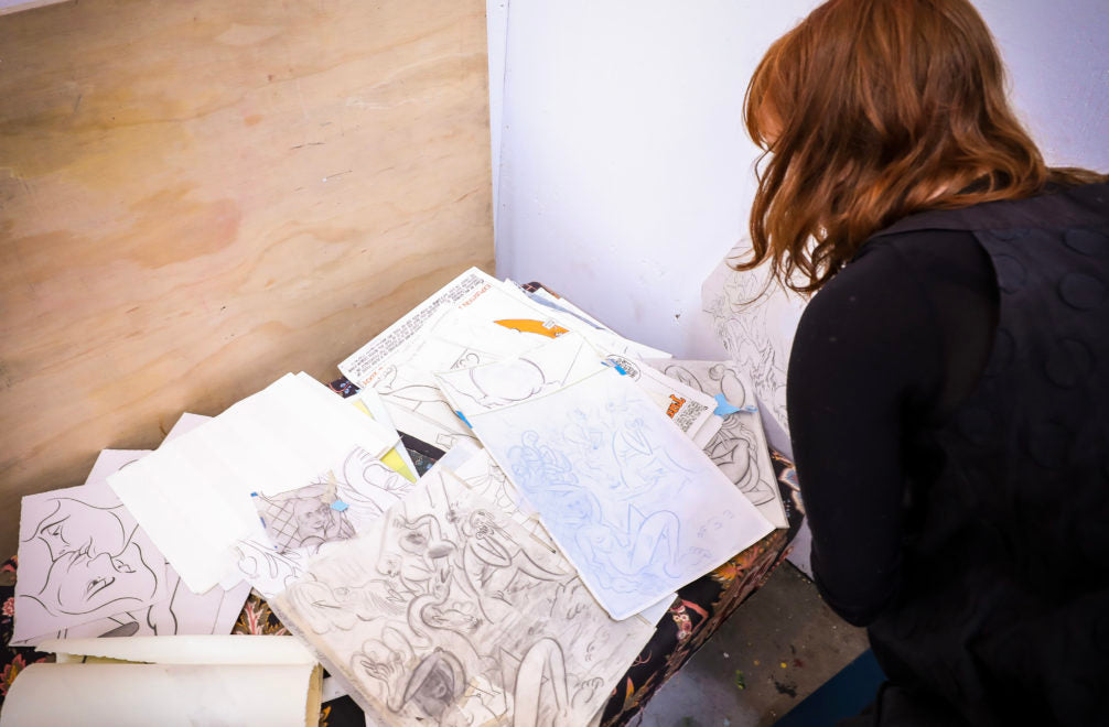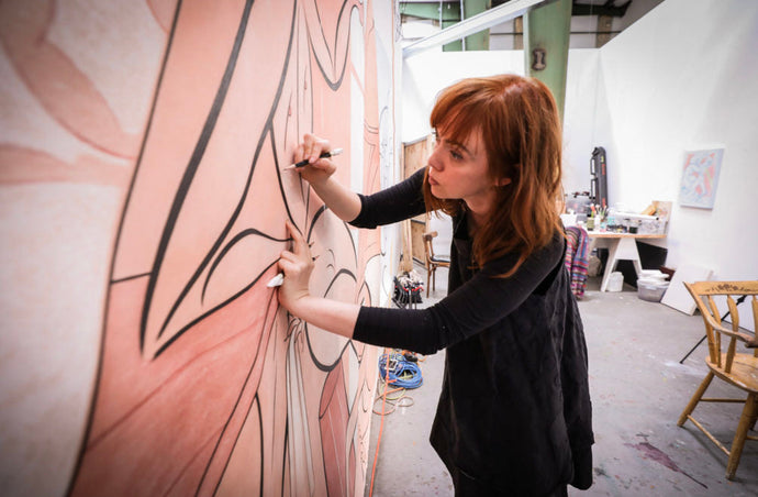 Employing a distinctive comic-inspired style, Koak uses her works to highlight the complex and personal themes of sexuality, human connection and female creativity. Her unique paintings and drawings have been featured in galleries internationally, and she’s recently been profiled in the New York Observer and Elephant magazine. During her Liquitex residency in San Francisco Koak changed the way she works, moving from pastels to acrylic, after being inspired by the performance and safety of our cadmium-free paints. Learn more about Koak below.
