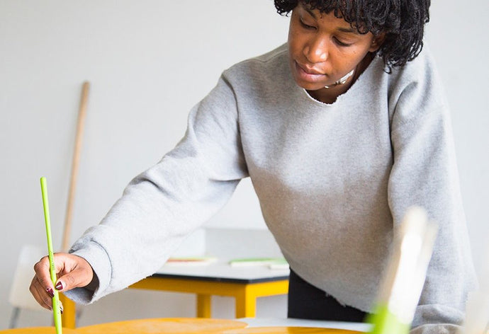 Tschabalala Self describes her current work as “exploring the emotional, physical and psychological impact of the black female body.” Showcasing an eclectic blend of colors and textiles, Tschabalala's thought-provoking work has featured at solo exhibitions in Rome and London. During her Liquitex Cadmium-Free Research Residency at the Griffin Gallery Studios in London, Tschabalala worked on a large-scale mural for a local charity called Hospital Rooms. Using the safer cadmium-free paints was extremely important to Tschabalala, because she knew her mural would eventually end up in a health facility used by adolescents. Discover how she used our materials during her residency here.