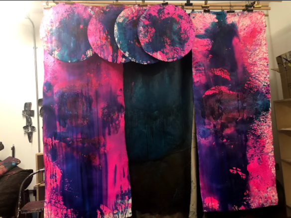 “I work in an unusual way when I work with paint in that I put my whole body into it. This is exciting for me as it allows me to truly embody and maximize my expression in a way that I was not able to access when I painted in a more traditional way. This flexibility and expansiveness is exciting and interesting to me. It is thrilling to imagine just how far I can take this.”