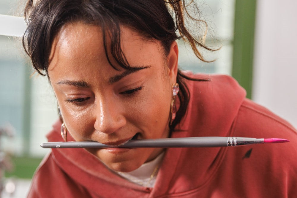 A longtime fan of Liquitex Basics, COVL lives to push herself out of her comfort zone and believes it’s at the heart of creative evolution. Constantly exploring different surfaces, scales and media, she shifts from virtual to physical. Her first self produced multi-city show HOMESICK, explored the nuances of healing and the power of rewriting our histories through a larger-than-life lens. COVL is currently artist in residence at Industry City, Brooklyn, where she's facilitating and programming events
