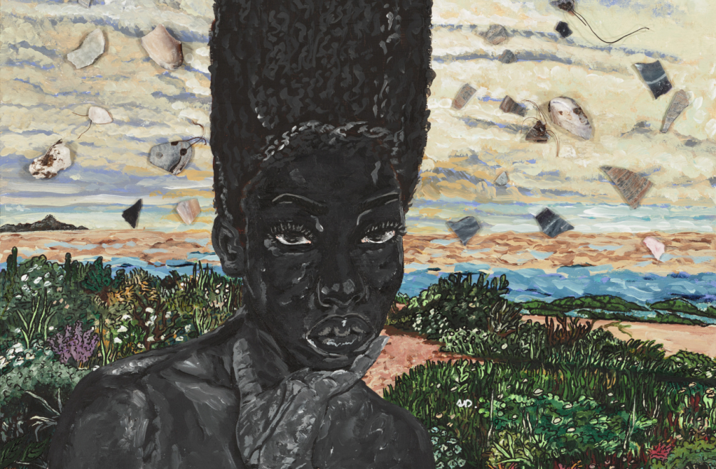 The first piece that really impacted me was “Untitled (Lovers)” by Kerry James Marshall. When I saw the piece, I realized I hadn’t seen Black people in art before. I loved his palette for painting dark skin, of Black people in different everyday situations. His work made me want to paint so I could tell visual stories about Black people living in the Pacific Northwest. Other artists that inspired me as a teenager were local artist Arvie Smith and renowned artist Kehinde Wiley.