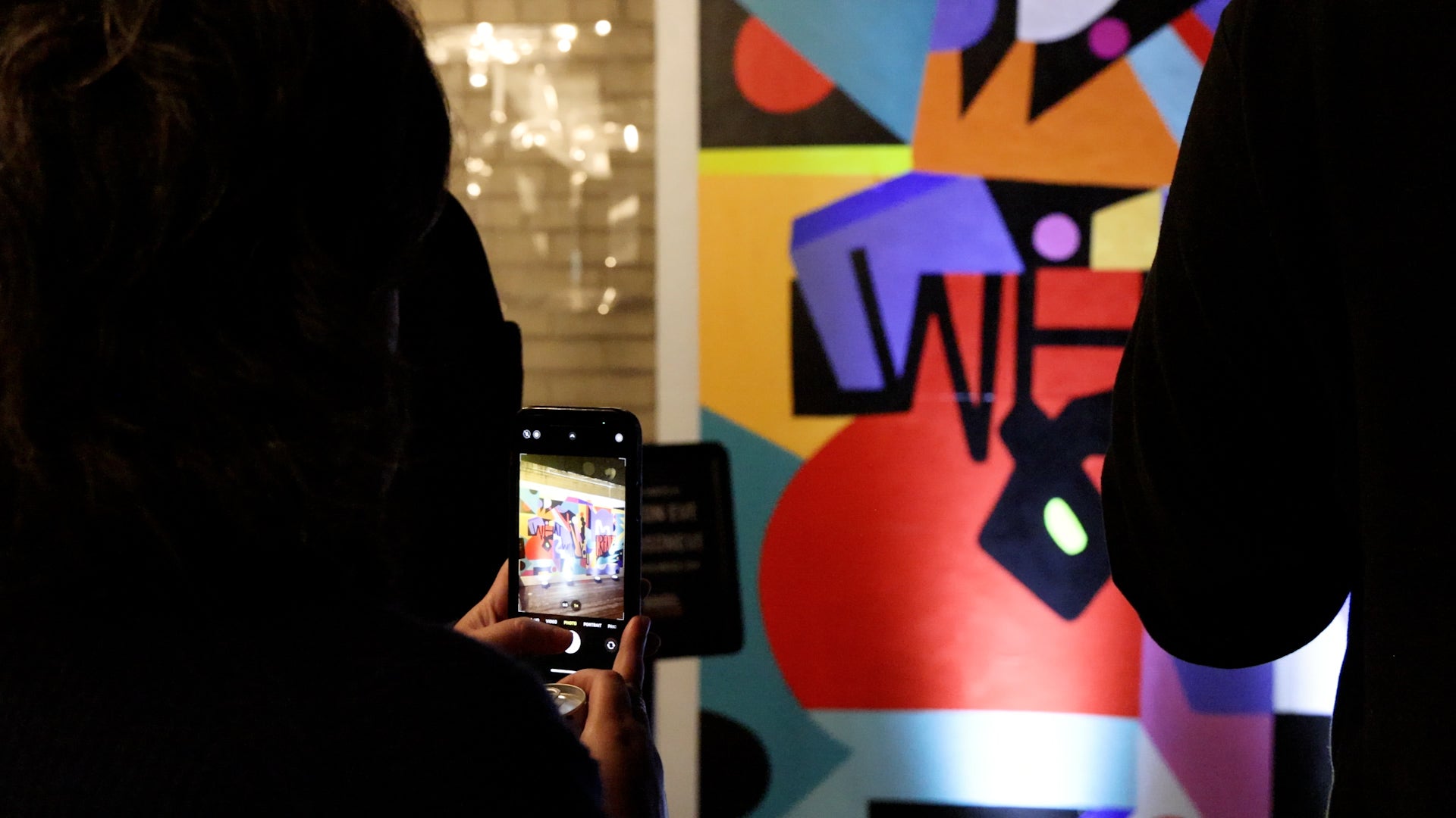 Graphic, dynamic and emitting the unique energy of the city, Eve’s piece asks, “What will you create?” The artist regularly works across multi disciplines and mediums, painting here with the vibrant, pigment-rich colors of Liquitex Bio-Based Heavy Acrylic. In her practice, she explores the emotional power of color, texture, and form and is drawn to investigating nostalgia and intimacy. “I’m always questioning… What are the colors of grief? What is the texture of joy? What shapes are symbolic of home?”