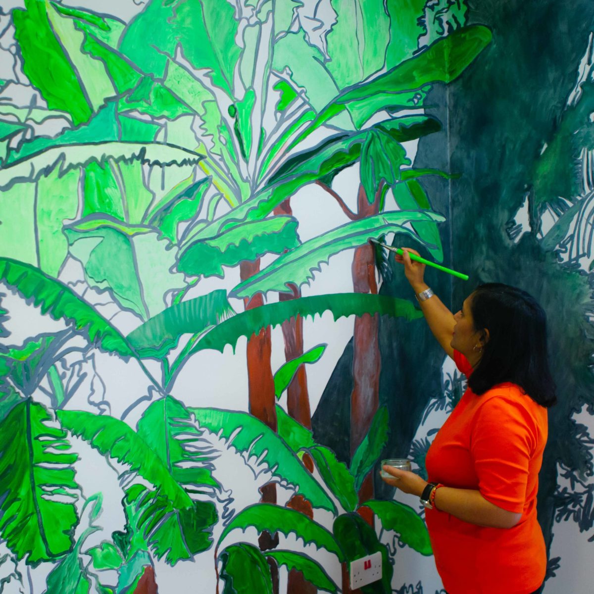 Liquitex has been supporting the charity’s work since 2017. We’re proud to help them bring beauty and creativity into spaces that need it and to challenge the way the world considers and treats people with the most difficult of mental health diagnoses. Liquitex provides professional materials for artists and patients to use on various projects across the UK as well as people to help. Resident artist, Tschabalala Self, created a piece for the Snowsfields Adolescent Unit in London, and our London HQ team has also been on site to paint the Recovery College. See artist Sutapa Biswas working on the Women's Lounge at Highgate's Garnet Ward in London, and Rebecca Byrne's 136 Suite at the Woodlands Unit in Ipswich.