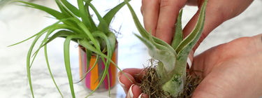 Place the plant centrally in the pot and make sure you arrange the roots underneath. Top it up with some more soil and pebble mixture to hold it in place.