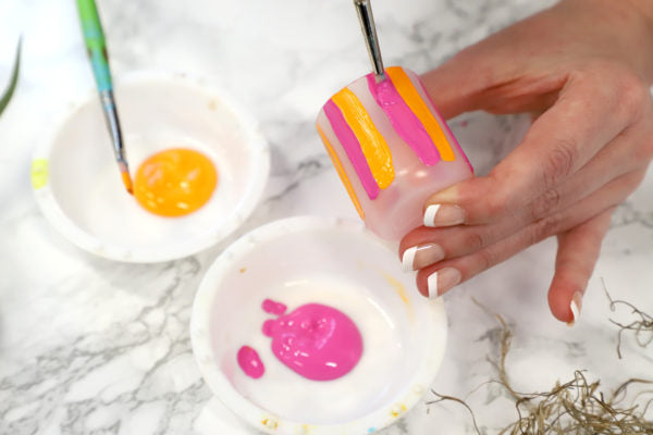 Want to green up the studio? Bring some of the outside in with succulents, air plants and seedlings planted in used Soft Body or Acrylic Gouache pots. Designed to be recyclable and reusable, these are the perfect size and shape for growing. All you need is a little imagination, and some colors and mediums to decorate them with.