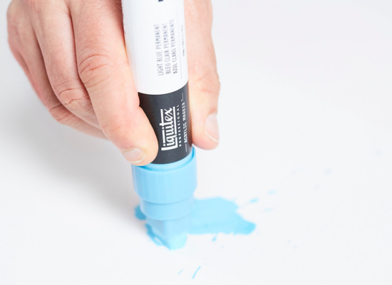 Store Liquitex Acrylic Markers horizontally to maintain color consistency. Avoid storing vertically with the nib facing down.