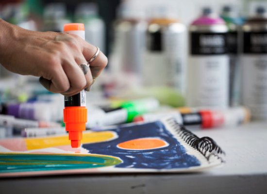 Varnish artwork made with Acrylic Markers after 24 hours of drying. Use Liquitex Professional Spray Varnish for best results with fluorescent colors.