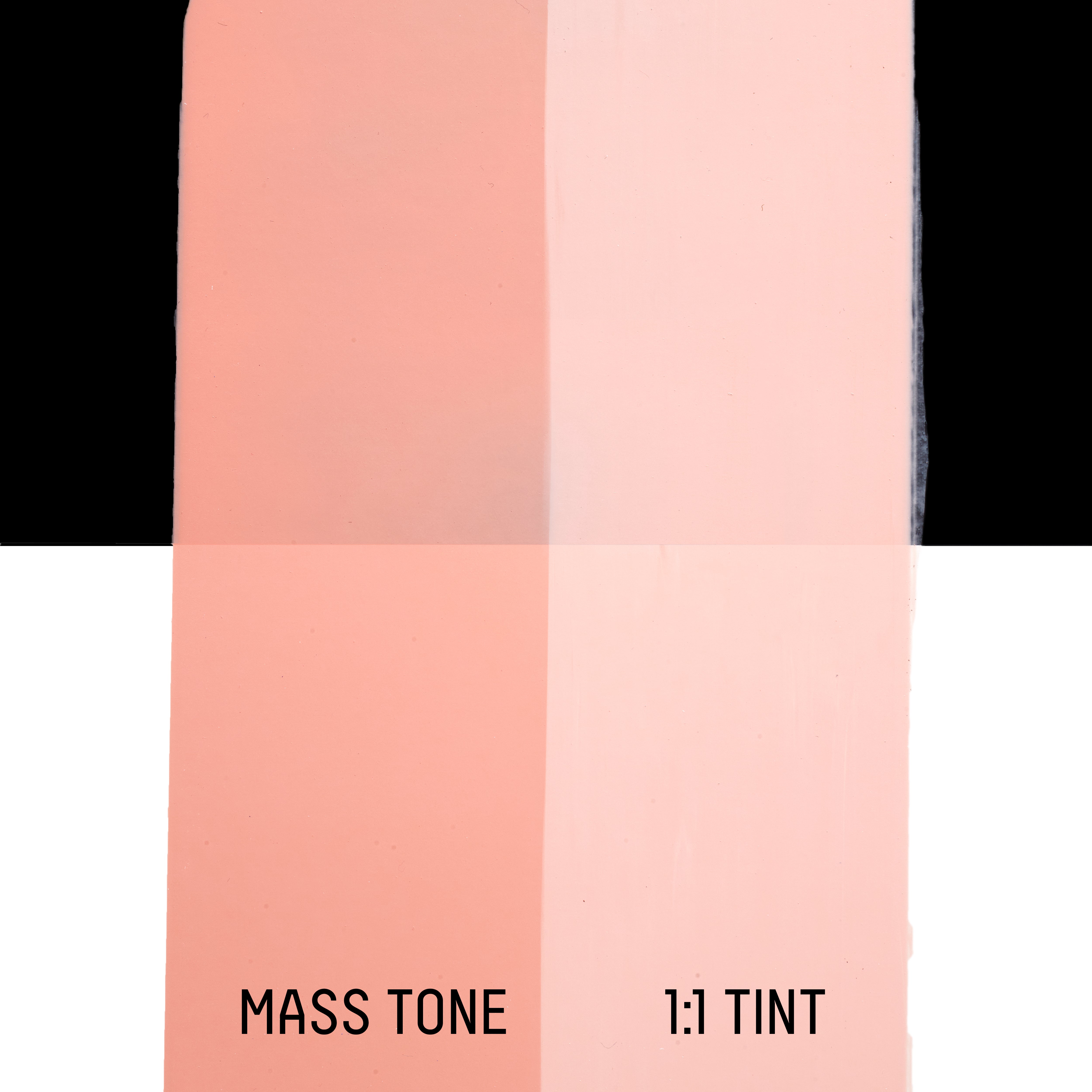 A pale and soft pink with a yellow tinge. This is an opaque color made up of multiple pigments.