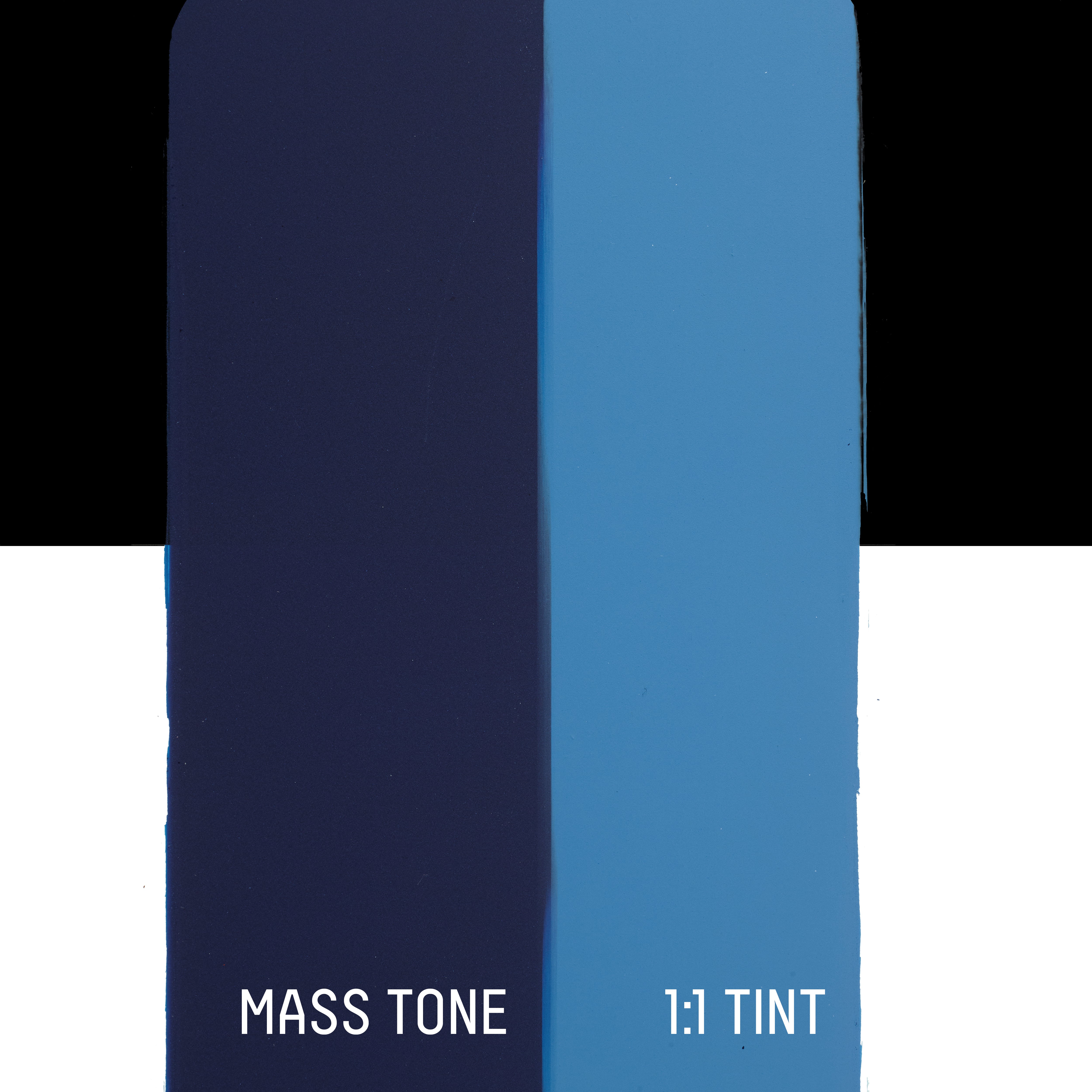 A deep dark blue opaque color, that recreates the appearance of Prussian blue pigment. Prussian blue was the first known artificially manufactured color and was made by the colormaker Diesbach of Berlin in the early 1700s when experimenting with the oxidation of iron