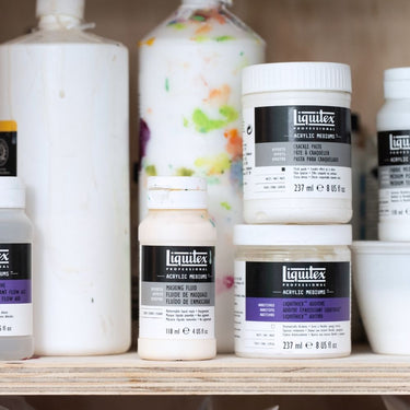Additives are used to adjust the chemistry of acrylic paints, but they are very different to the rest of the mediums family. Most acrylic mediums contain high proportions of acrylic resins, but additives do not. With most acrylic mediums, you can add as much as you like to your color without weakening the stability of the acrylic film, while additives will dilute the strength of the acrylic film. This means that you need to be more careful about how much you mix into to your paint or it will have issues around drying, tackiness, separation and durability. Our four additives offer really useful individual benefits, so just make sure you follow the directions for use before starting to work with them.