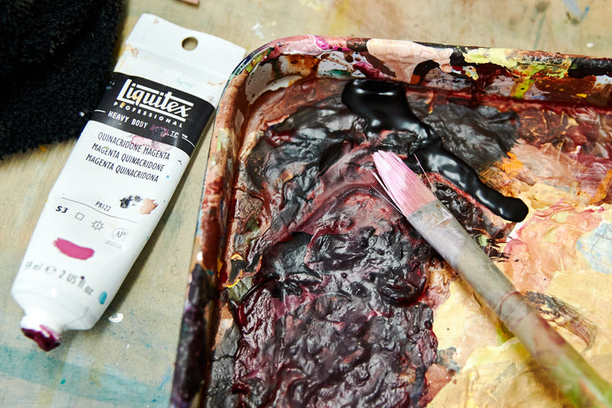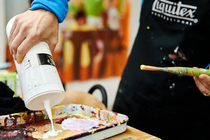 Once a new formulation is in process in the lab, it’s time to call in our in-house packaging technologists. They’re always looking to improve usability for you in the studio, so they work closely with our in-house artists to find the right format. For our Soft Body and Acrylic Gouache bottles, we asked a big group of artists to sketch out their dream packaging as our starting point, before playing with a range of shapes and materials. The technologists then commission prototypes and torture test them with artists to make sure they’re fit for purpose. Functionality is king here and we're always looking to innovate. In 1980 we were the first company to change our tubes from pure metal to lightweight glaminate (a technology commonly used in the cosmetic industry) to stop the problem of tubes corroding and cracking with use. Liquitex packaging needs to stand the test of time. And the reality of life in the studio.