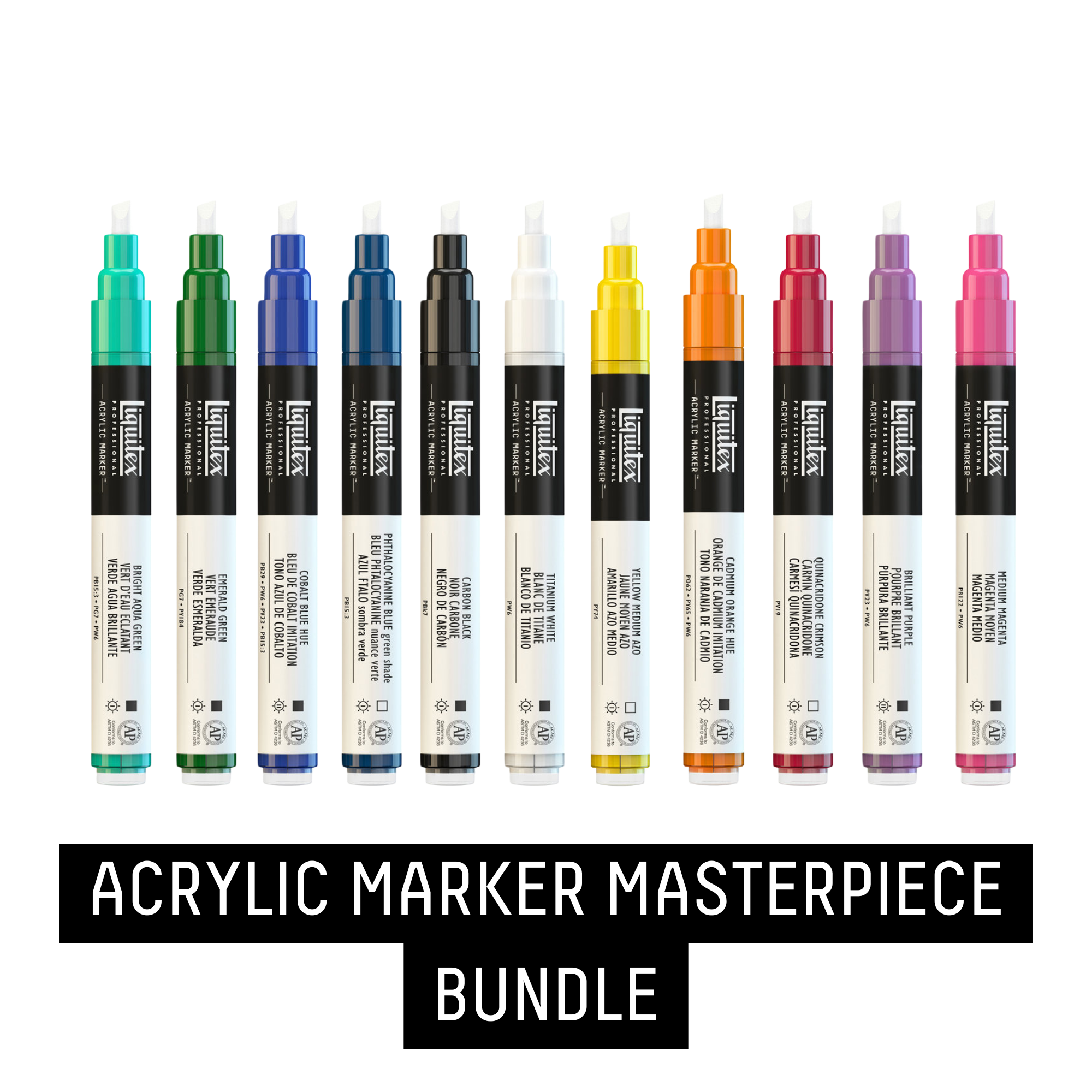 Bring your ideas to life with the Acrylic Marker Masterpiece Bundle. Featuring 12 bold and blendable colours, this set empowers you to craft vibrant designs with precision. From intricate detailing to expressive strokes, these 2mm markers are your go-to tool for creativity on paper, canvas, and beyond. Your masterpiece starts here.