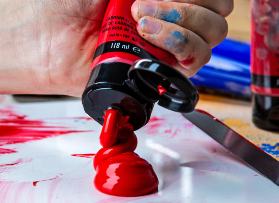 Basics paints maintain a consistent medium viscosity across all colors for versatility. We also offer Basics Acrylic Fluid for a more fluid viscosity in addition to our regular medium viscosity basics paint.