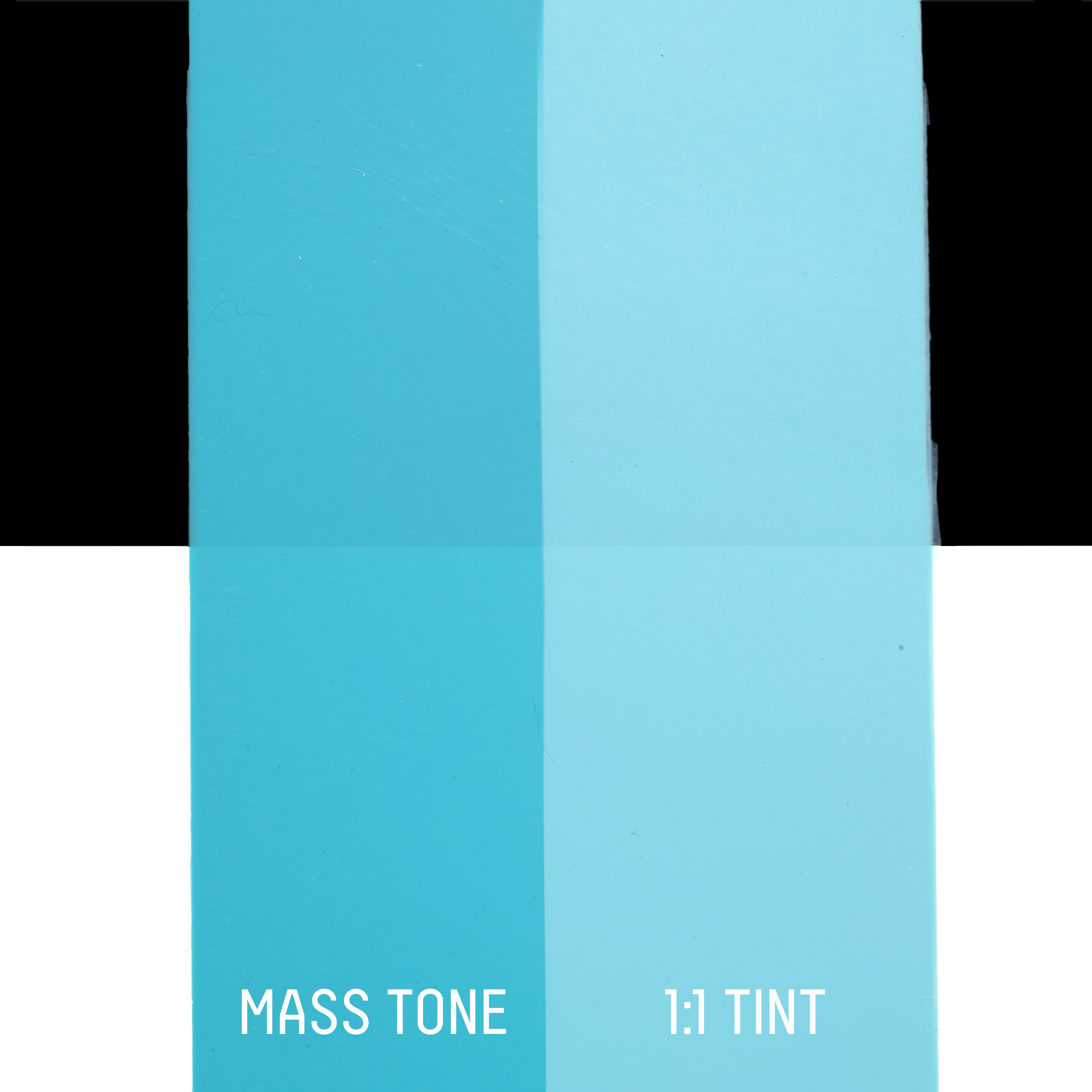 An opaque light blue color made with a mix of phthalocyanine pigments and titanium white
