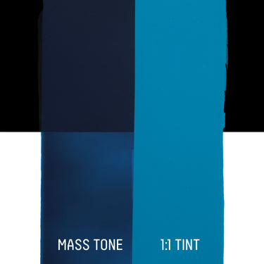 An intense deep blue single pigment color with a green undertone. It's made from the modern synthetic pigment phthalocyanine which was introduced in the 1930s and has a high tinting strength