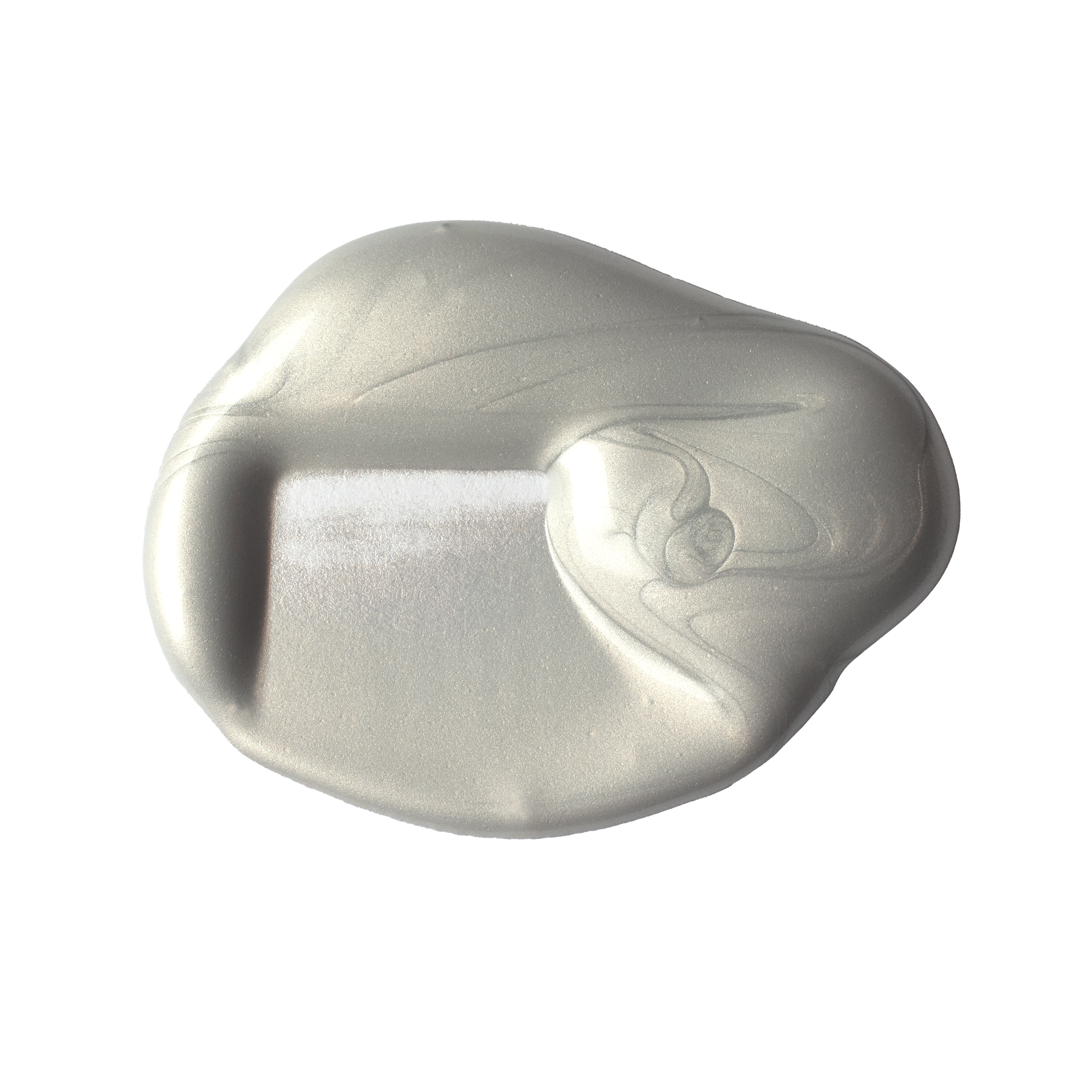 A warm metallic silver. Highly opaque, the color has a reflective lustre closely resembling aged silver metal