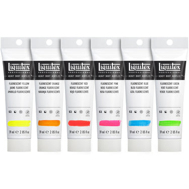 | Set Contents: | 6 x 59ml Professional Heavy Body Acrylic - Fluorescent Red, Fluorescent Pink, Fluorescent Orange, Fluorescent Yellow, Fluorescent Green, Fluorescent Blue |