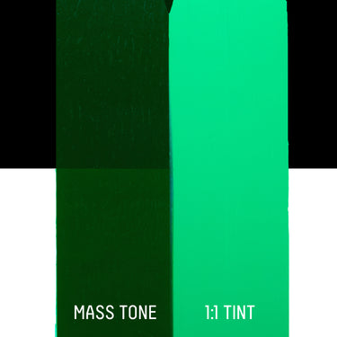 A brilliant transparent green single pigment color with a yellow undertone. It's made from the modern synthetic pigment phthalocyanine which was introduced in the 1930s and has a high tinting strength
