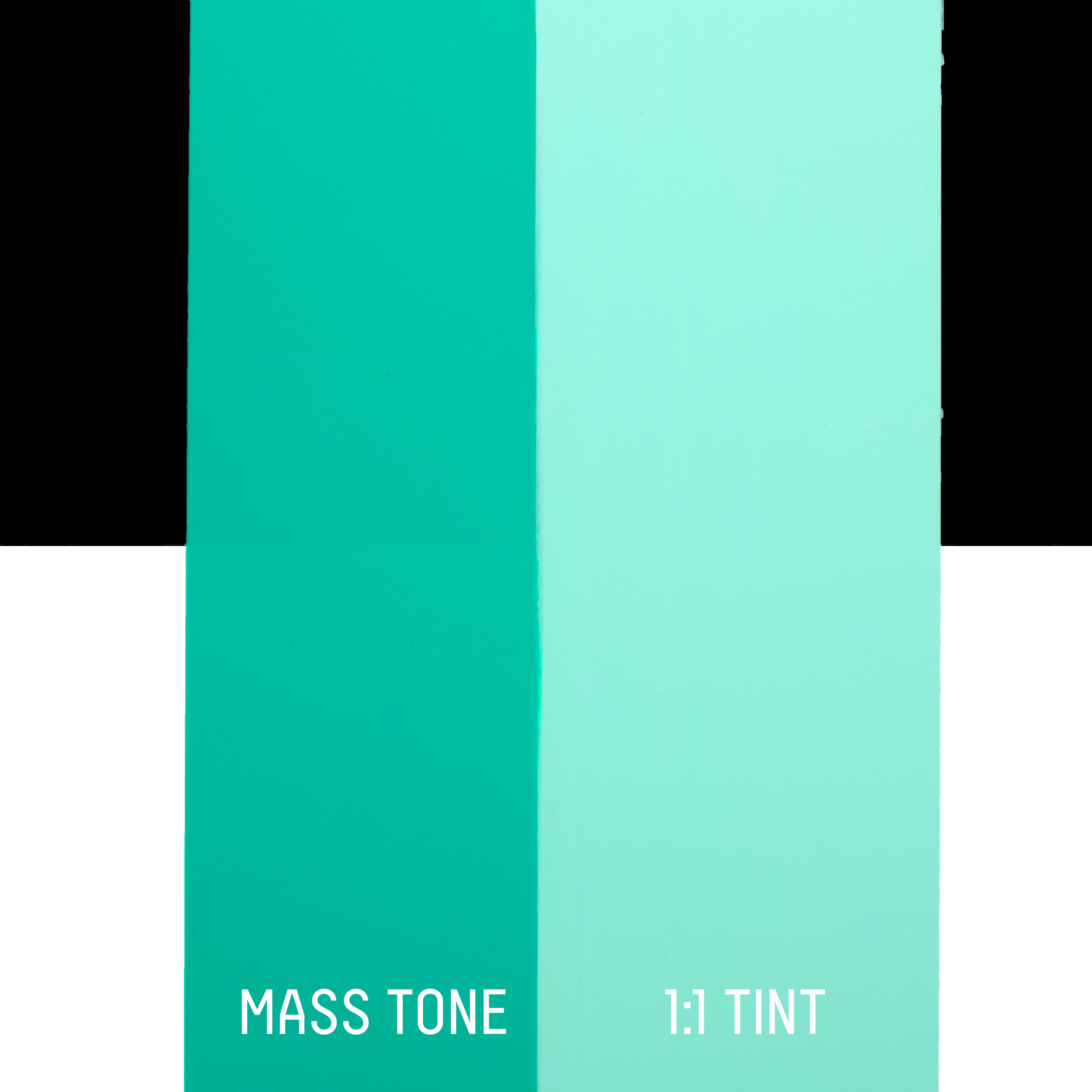 An opaque vivid green-blue color made with a mix of phthalocyanine blue, titanium white and phthalocyanine green (blue shade)