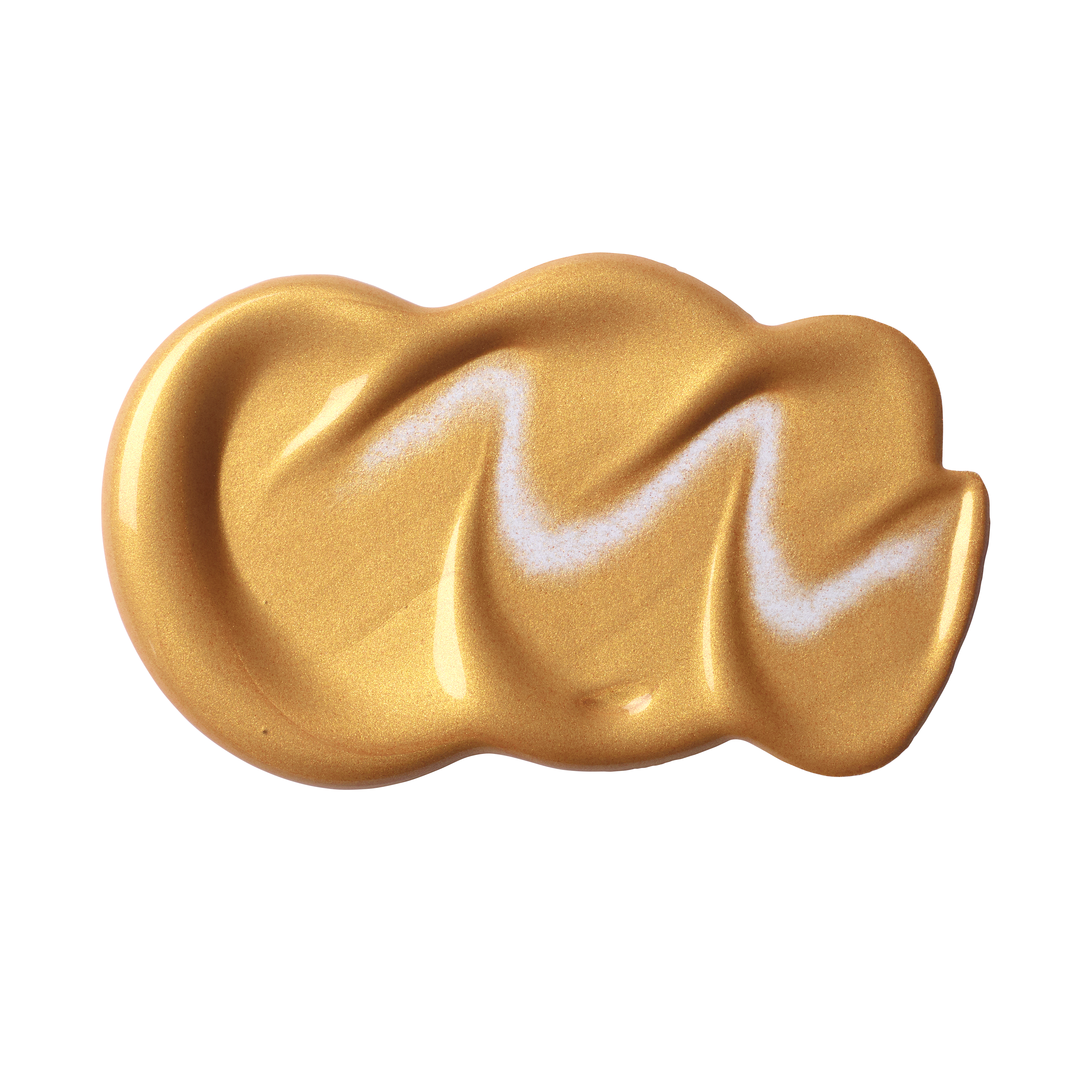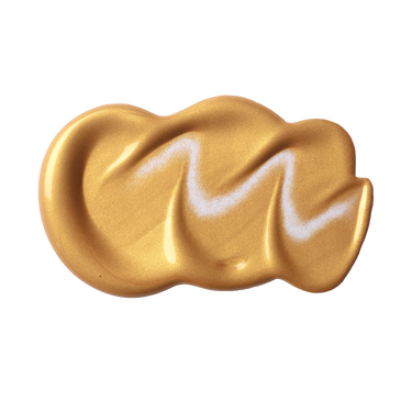 A metallic warm gold. Semi-opaque, the color gives an iridescent lustre resembling that of burnished gold metal