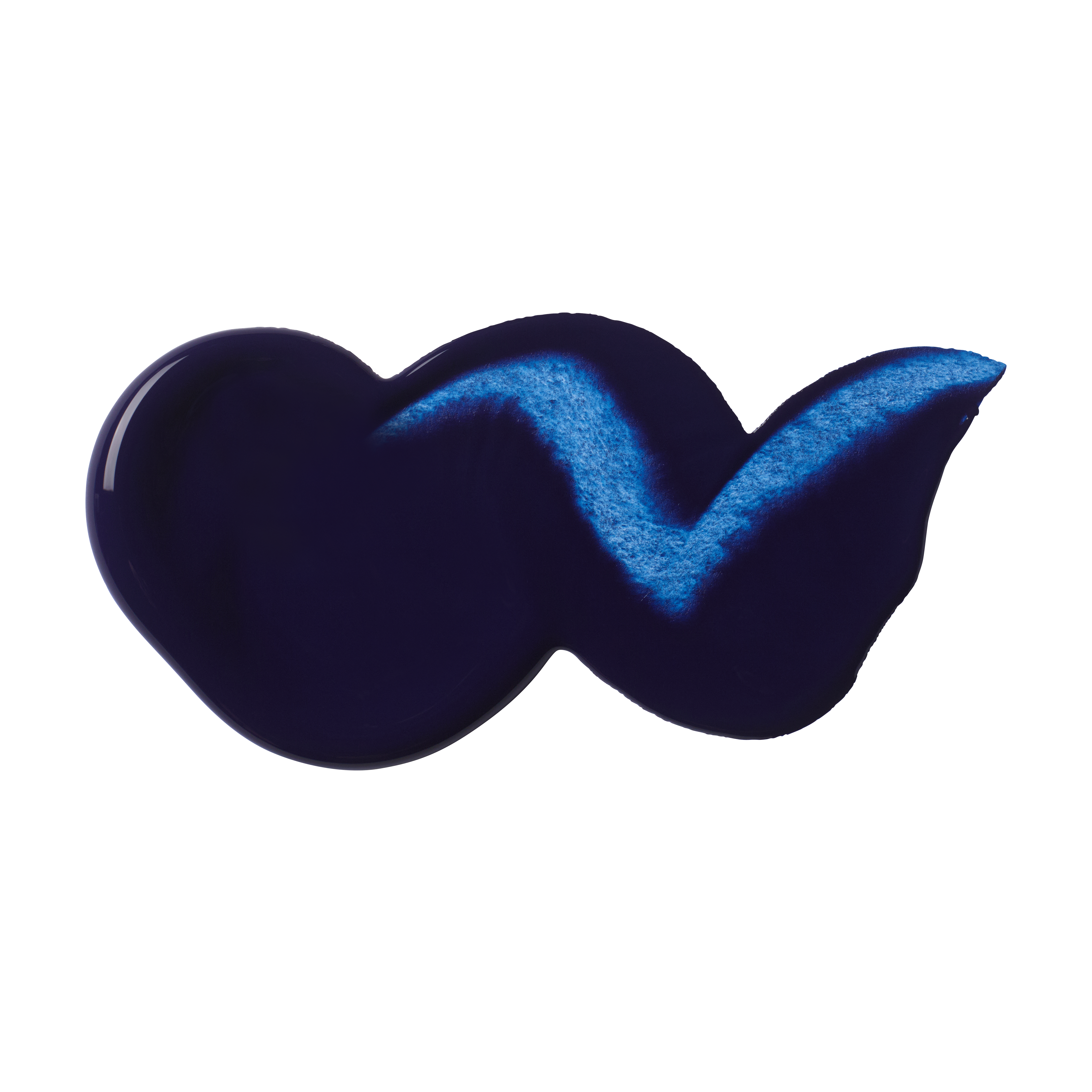 A deep dark blue semi-opaque color, that recreates the appearance of Prussian blue pigment. Prussian blue was the first known artificially manufactured color and was made by the colormaker Diesbach of Berlin in the early 1700s when experimenting with the oxidation of iron