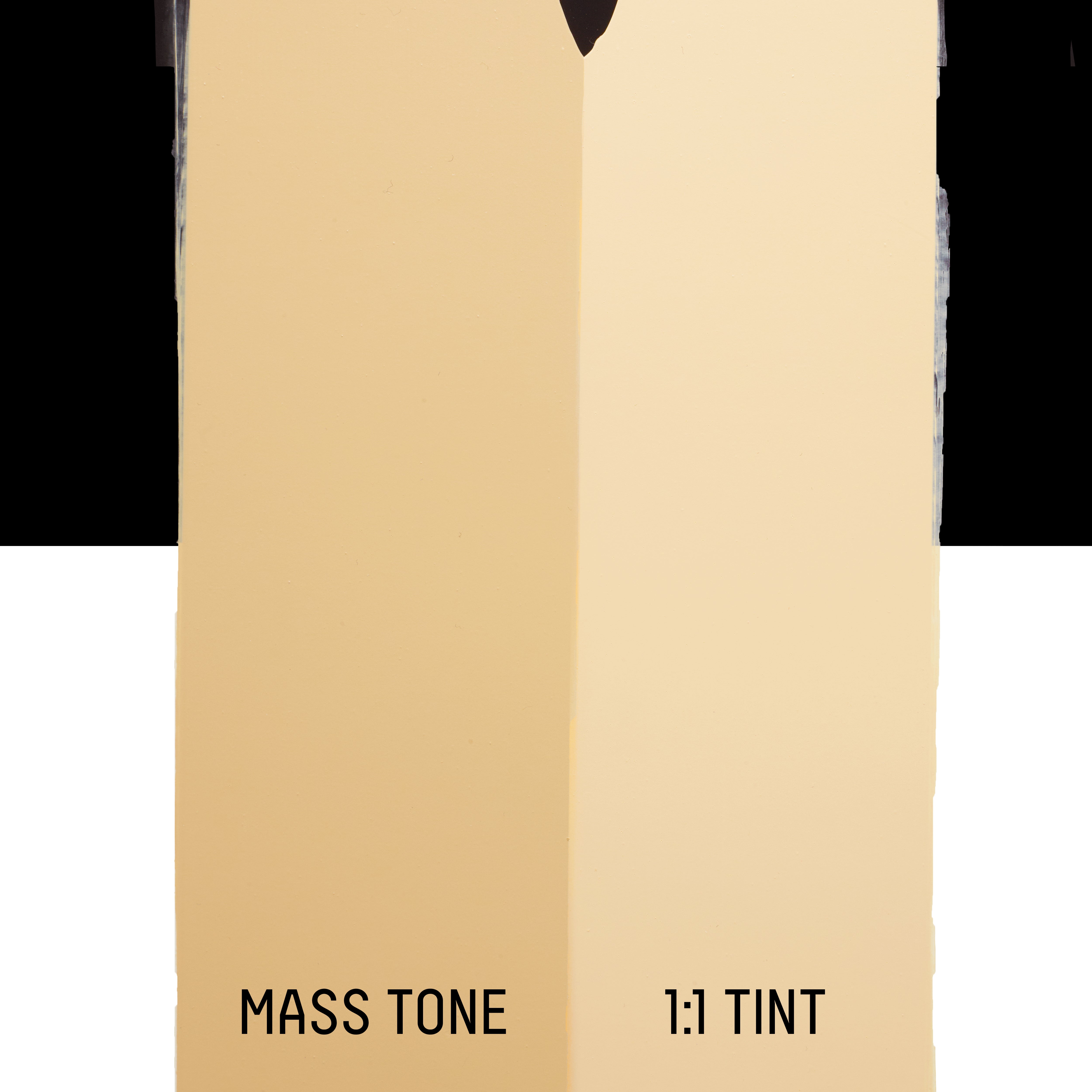 An opaque, warm creamy white containing a blend of pigments. The shade originated in the 1960s as the result of a manufacturing error when making titanium white paint