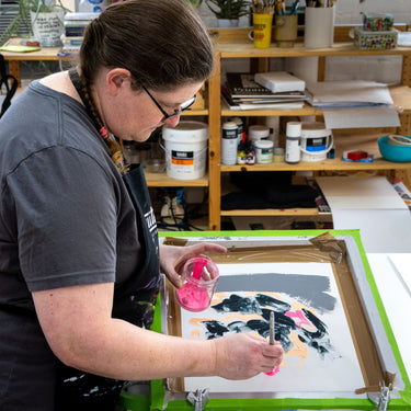 Take your idea from blank silkscreen to full color print with this studio short, showing Kate Eggleston working with our Professional Silkscreen Medium, Heavy and Soft Body.